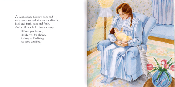 ¾î¸Ó´Ï´Â °«³ ¾Æ±â°¡ ÅÂ¾î ³µÀ» ¶§´Â ǰ¿¡ ²À ¾È°í ³ë·¡¸¦ ºÒ·¯ ÁÖ°í µÎ »ìÀÌ µÇ¾î ¸»½éÀ» ºÎ·Á, "This kid is driving me CRAZY!"¶ó´Â ¸»À» ÇÏ°Ô µÇ¾îµµ ¹ãÀÌ µÇ¸é ¾î¸Ó´Ï´Â ¾ÆÀ̸¦ ¾È°í ¸¶¹ý°°Àº ±× ³ë·¡¸¦ ºÎ¸¨´Ï´Ù. I'll love you forever, I'll like you for always, As long as I'm living my baby you'll be. ¾ÆÀÌ´Â Á¡Á¡ ÀÚ¶ó°í ÀÚ¶ó¼ ½Ê´ë ¼Ò³âÀÌ µÇ°í, ¶Ç ÀÚ¶ó°í ÀÚ¶ó¼ ¾î¸¥ÀÌ µÇ¾î ÁýÀ» ¶°³ªµµ ¾î¸Ó´ÏÀÇ »ç¶ûÀº º¯ÇÔÀÌ ¾ø½À´Ï´Ù. ¾ÆÀÌ´Â ÀÚ¶ó¼ ¾î¸¥ÀÌ µÇ°í ¾î¸Ó´Ï´Â ´Ä¾î ´õÀÌ»ó ¿òÁ÷ÀÏ ¼ö ¾ø°Ô µË´Ï´Ù. ¾î¸Ó´Ï°¡ ÈûÀÌ µé¾î ³ë·¡¸¦ ÀÕÁö ¸øÇϸé ÀÌÁ¦ ´Ù Å« ¾ÆµéÀÌ ¾î¸Ó´Ï¸¦ À§ÇØ ³ë·¡¸¦ ºÎ¸¨´Ï´Ù. ±×¸®°í´Â ÁýÀ¸·Î µ¹¾Æ¿Í ¸· ÅÂ¾î³ ¾ÆÀ̸¦ ¾È°í ¾î¸Ó´Ï°¡ ÀÚ½ÅÀ» Ű¿ì¸é¼ ºÒ·¶´ø ÁÖ¿Á°°Àº ³ë·¡¸¦ ºÒ·¯ ÁÝ´Ï´Ù.