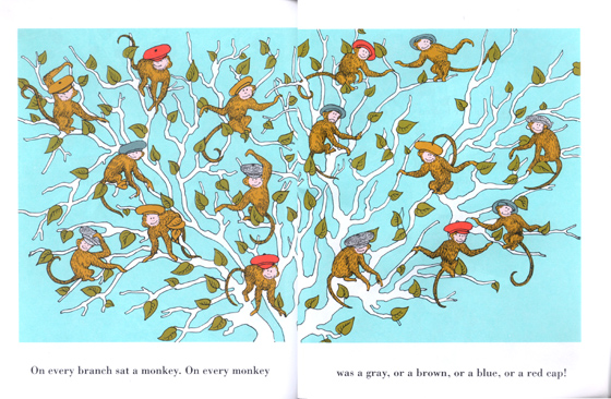 Charming folktale as a peddler of caps runs into trouble when monkeys steal his wares.