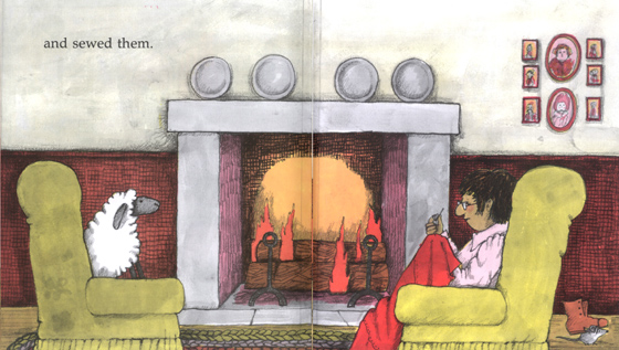 Charlie shears his sheep, cards and spins the wool, weaves and dyes the cloth, and sews a beautiful new red cloak.