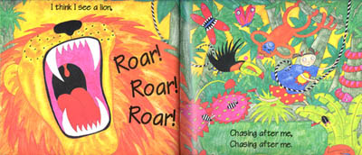 Mom : Let's play the game 'I Spy'. Do you want this game? Child : Yes, I'd love to. Mom : Are you ready to start? Child : OK, Mom. Mom : I spy a lion. Can you find it? Child : I got it. Here's a lion. Mom : Great! Now it's your turn to give me a question.